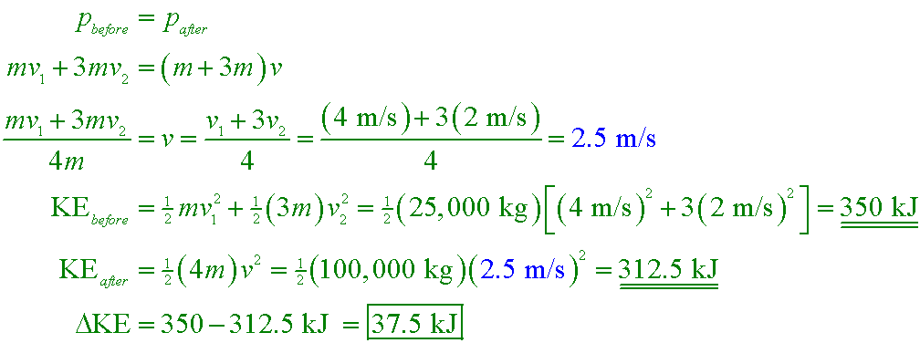 in the same direction at 2.0 m/s. What energy is lost in the collision?